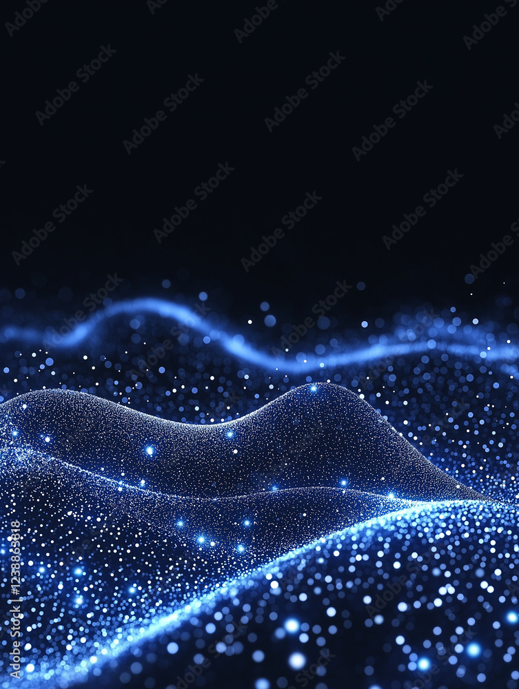 The watermark will not be included on Wall mural.: Blue digital wave: abstract digital art depicting a mesmerizing wave of blue particles, creating a s