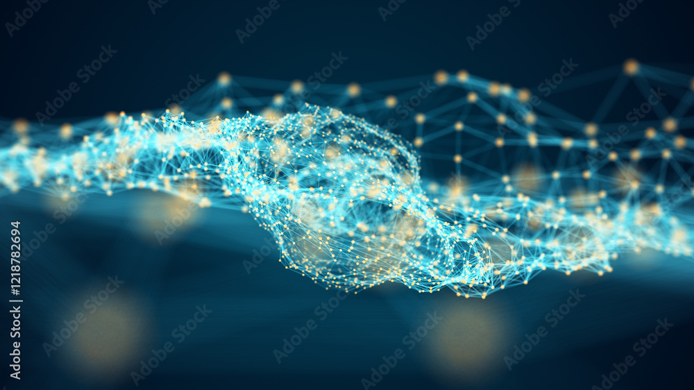 Blue dot and line mesh connection with polygonal technology abstract backgroundWall mural