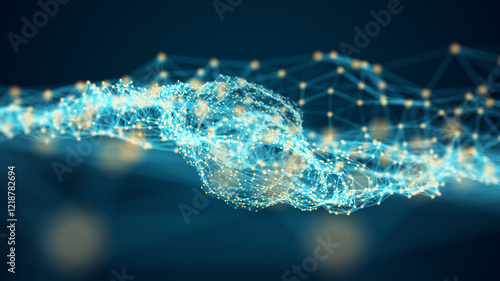 Wall mural blue dot and line mesh connection with polygonal technology abstract background