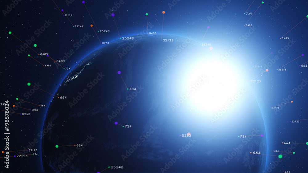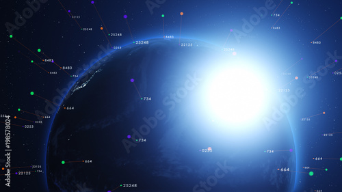 Wall mural blue earth covered with 3d lines and numbers around. technology and global network concept. - Wall murals Wall mural blue earth covered with 3d lines and numbers around. technology and global network concept. - Wall murals