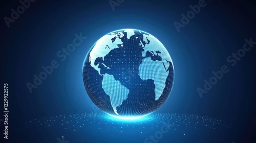 Wall mural : Blue earth globe with dots on dark background for digital themes