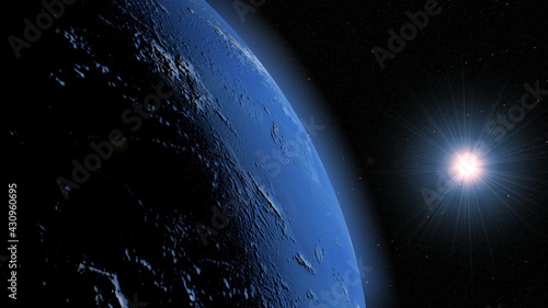 The watermark will not be included on Wall mural.: Blue earth revolves around its axis on a black background in 3d - view our planet from outside -