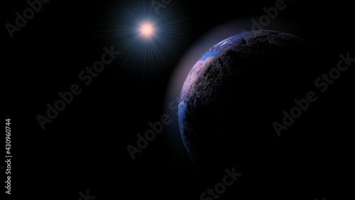 The watermark will not be included on Wall mural.: Blue earth revolves around its axis on a black background in 3d - view our planet from outside -