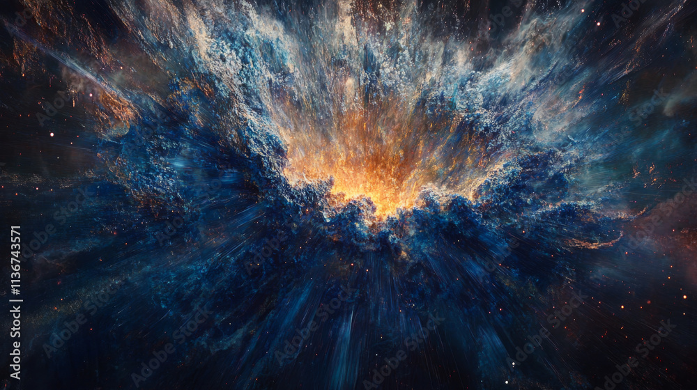 The watermark will not be included on Wall mural.: Blue explosion glow with bright light, rays and dust around flash with transparent effect - realistic