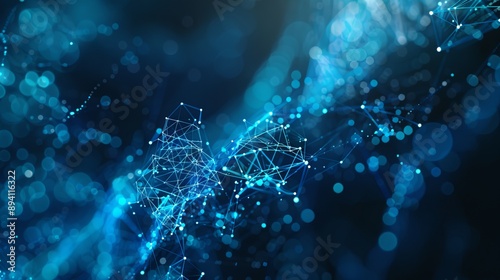 Wall mural blue fantasy abstract technology and science background featuring particles and plexus connected lin - Wall murals Wall mural blue fantasy abstract technology and science background featuring particles and plexus connected lin - Wall murals