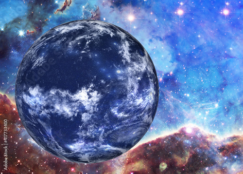 Wall mural blue fiction planet somewhere in extreme deep space far galaxies and stardust. science fiction backg - Wall murals Wall mural blue fiction planet somewhere in extreme deep space far galaxies and stardust. science fiction backg - Wall murals