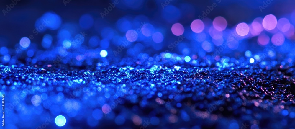Wall mural blue glittering texture with bokeh effect featuring sparkles and reflections on a dark background su