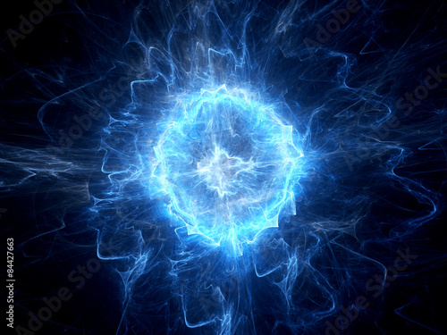 Wall mural blue glowing ball lightning - Wall murals Wall mural blue glowing ball lightning - Wall murals