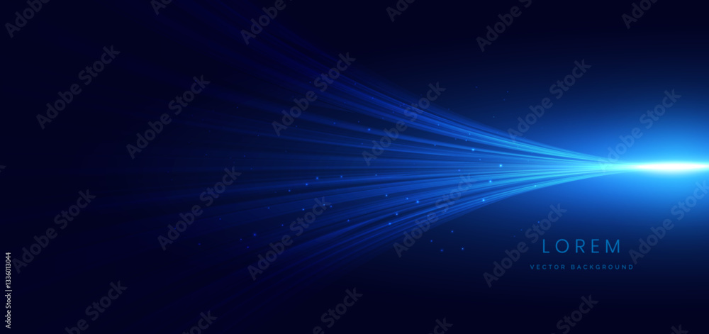 Wall mural blue glowing ray curved lines on dark background with copy space for text.