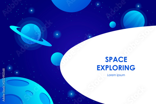 Blue horizontal space background with abstract shape and planets - cover template, banner, presentatiWall mural