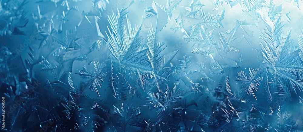 The watermark will not be included on Wall mural.: Blue ice winter background with a frozen pattern on a window creating a textured blue wallpaper perf