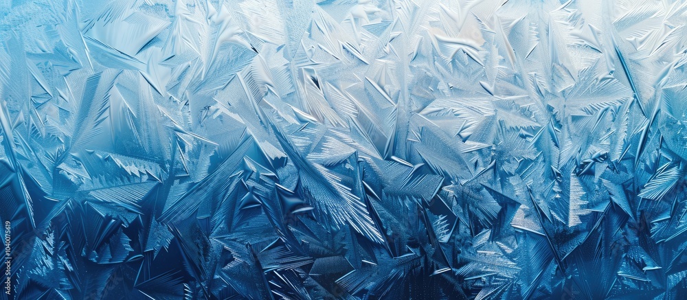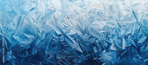 The watermark will not be included on Wall mural.: Blue ice winter background with a frozen pattern on a window creating a textured blue wallpaper perf