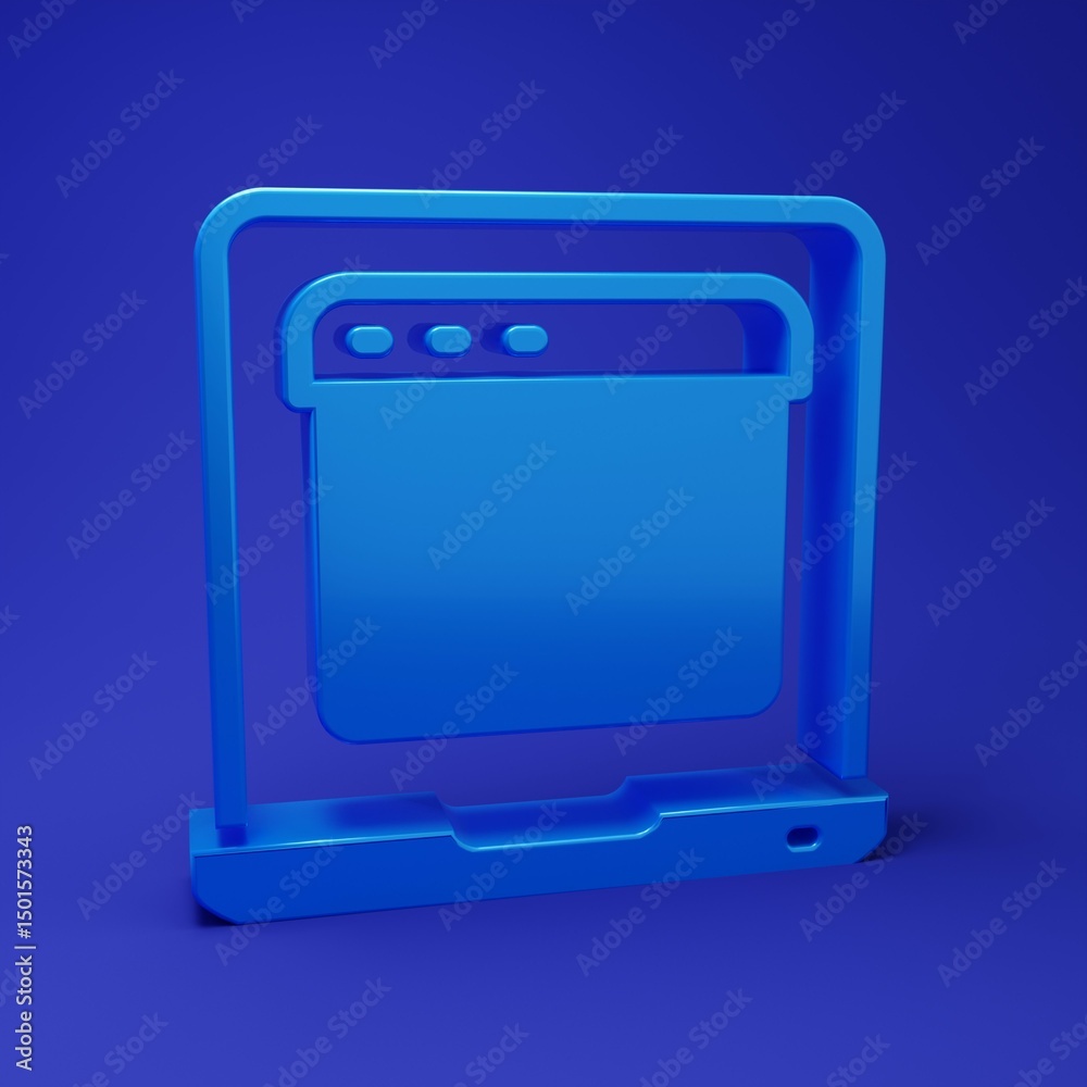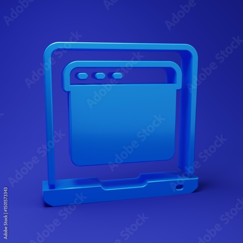 Wall mural blue laptop with browser window icon isolated on blue background. computer notebook with empty scree