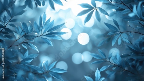 Wall mural blue leaves with soft bokeh background creating a tranquil and serene atmosphere ideal for nature-th - Wall murals Wall mural blue leaves with soft bokeh background creating a tranquil and serene atmosphere ideal for nature-th - Wall murals