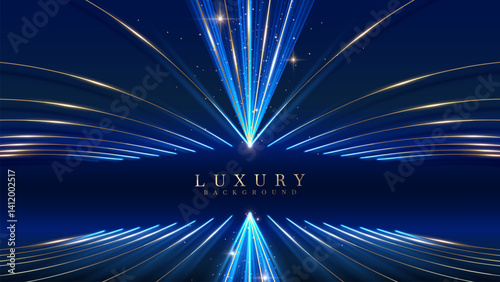 Wall mural blue luxury background with effect glowing with bokeh and golden curves, this elegant backdrop desig