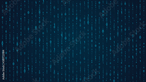 Wall mural blue matrix background. falling binary numbers in retro futuristic style, abstract digital wallpaper