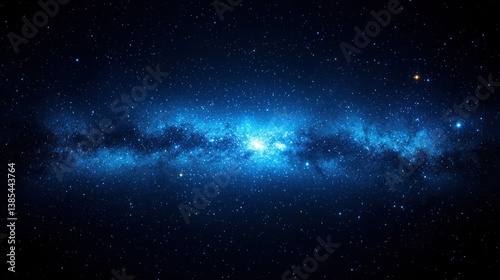 Wall mural : Blue milky way glowing galactic core with stardust and nebula in deep space
