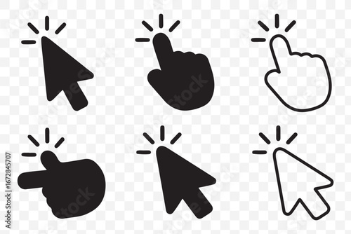 The watermark will not be included on Wall mural.: Blue mouse cursor and hand icons with click isolated