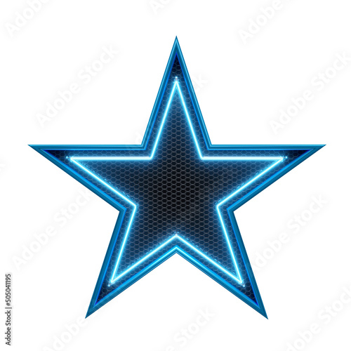 The watermark will not be included on Wall mural.: Blue neon star in grid 3d render