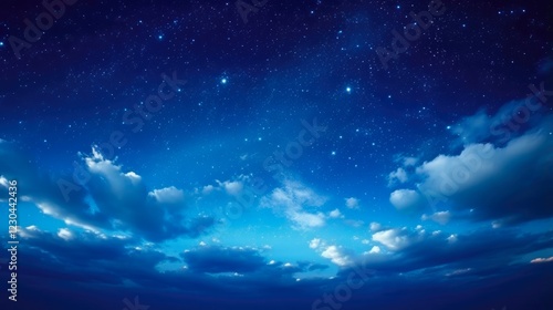 Blue night sky with milky way and stars - panoramic universe filled with noise and grain from long exWall mural