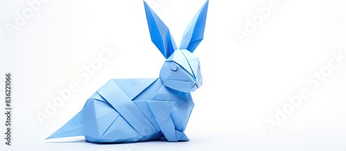 The watermark will not be included on Wall mural.: Blue rabbit origami on white backdrop with copy space image -