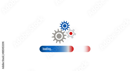 Wall mural : Blue red loading updates, software, download, upload concept vector with loading bar, gears - webpage