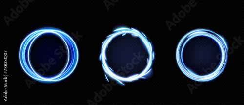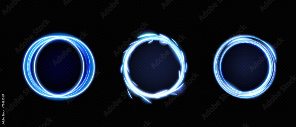 The watermark will not be included on Wall mural.: Blue round frames set isolated on transparent background - vector realistic illustration of circular