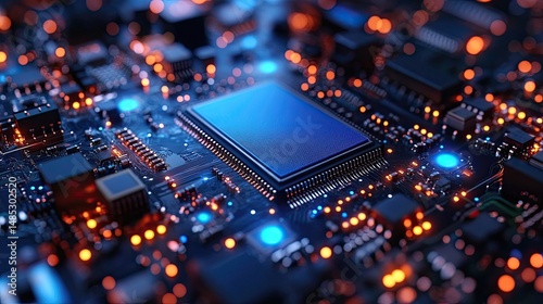 Wall mural : Blue silicon wafer macro with high-resolution royalty-free tech asset perfect for digital design pre