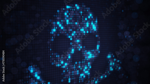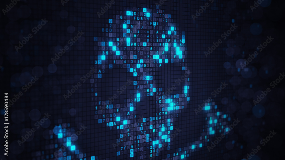 Wall mural blue skull shape of hex code and bokeh - Wall murals Wall mural blue skull shape of hex code and bokeh - Wall murals