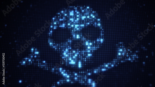 The watermark will not be included on Wall mural.: Blue skull shape of hex code on monitor