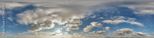 Wall mural : Blue sky 360 hdri panorama with twilight clouds before sunset in equirectangular format with zenith