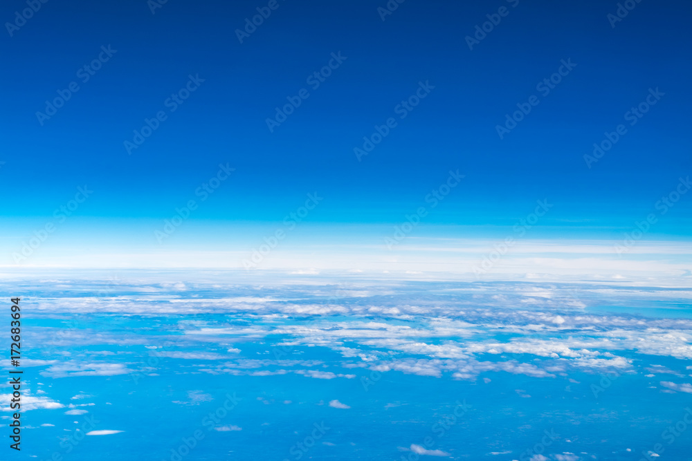Wall mural : Blue sky and cloud top view from airplane window,nature background