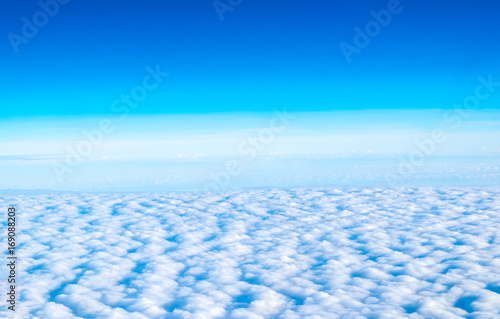 Wall mural blue sky and cloud top view from airplane window,nature background