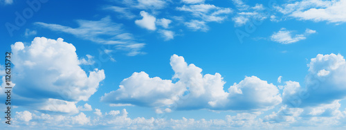 Wall mural blue sky background with tiny clouds. panorama background