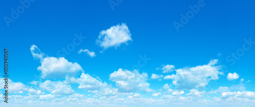 Wall mural : Blue sky background with tiny clouds - panorama background