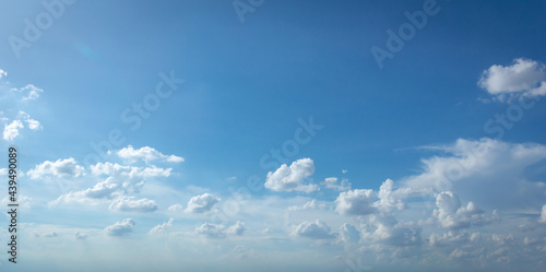 Wall mural blue sky background with tiny clouds. panorama white fluffy clouds in the blue sky.beautiful vast bl