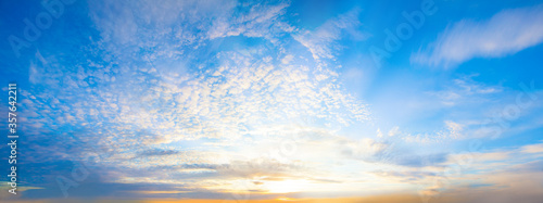 Wall mural : Blue sky clouds background - beautiful landscape with clouds and orange sun on sky