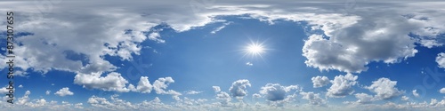 Wall mural : Blue sky hdri 360 panorama view with awesome white clouds with zenith for use in 3d graphics as sky