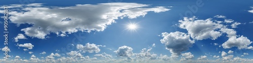 Wall mural blue sky hdri 360 panorama view with awesome white clouds with zenith for use in 3d graphics as sky