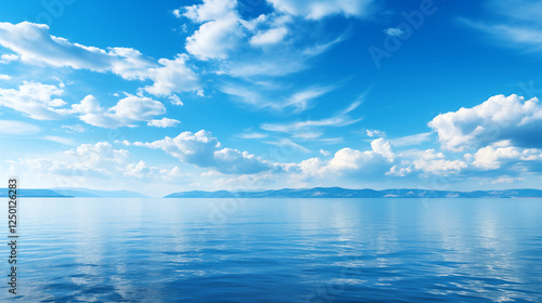 Wall mural blue sky over calm sea. blue sea and sunny sky on horizon over calm water