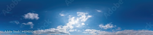 Wall mural blue sky panorama with cirrus clouds in seamless spherical equirectangular format. full zenith for u