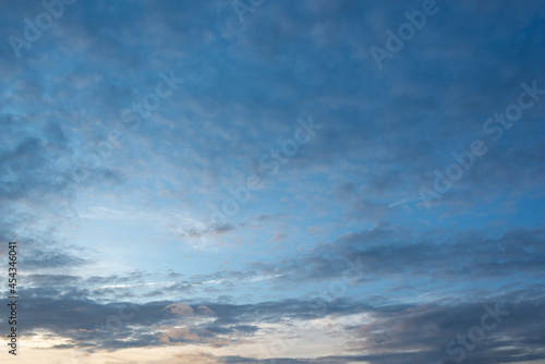 Wall mural blue sky with clouds at sunset, sky remplacement, nature background