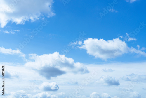 Wall mural : Blue sky with white fluffy clouds textured background -