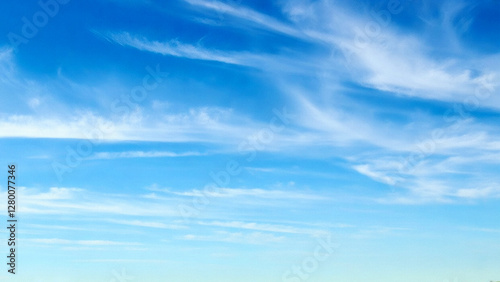 Blue sky with wispy clouds the image features a clear blue sky adorned with wispy, delicate clouds - Wall mural