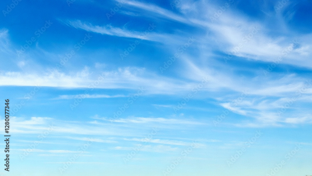 The watermark will not be included on Wall mural.: Blue sky with wispy clouds the image features a clear blue sky adorned with wispy, delicate clouds -