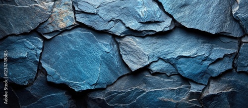 Wall mural blue slate stone texture with uneven surfaces and deep shadows ideal for background use copy space