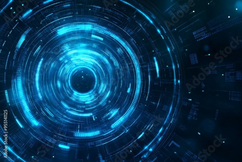 Wall mural blue technology background and abstract digital tech circle.copy space.
