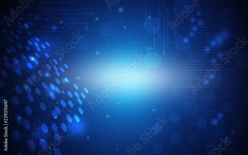 Wall mural blue technology background and abstract digital tech circle.copy space.
