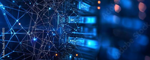 The watermark will not be included on Wall mural.: Blue technology background with network connections and digital data connection, web banner design f