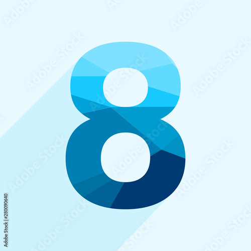 Wall mural blue vector polygon eight number font with long shadow. low poly illustration of flat design..
